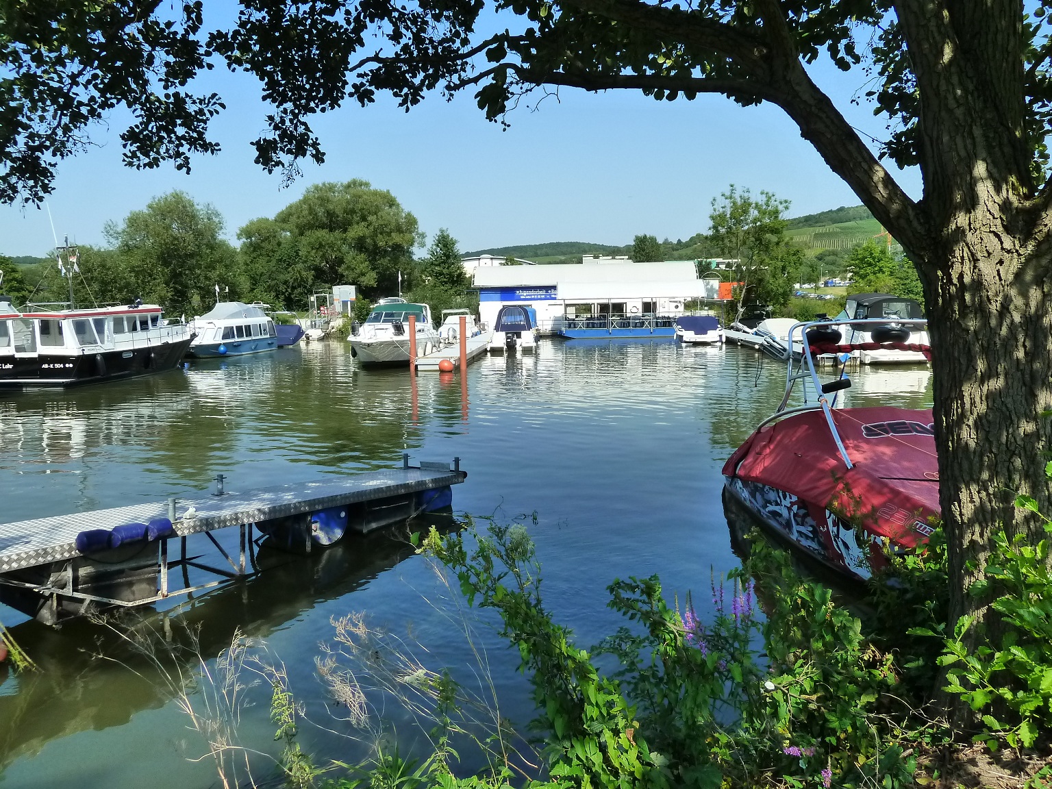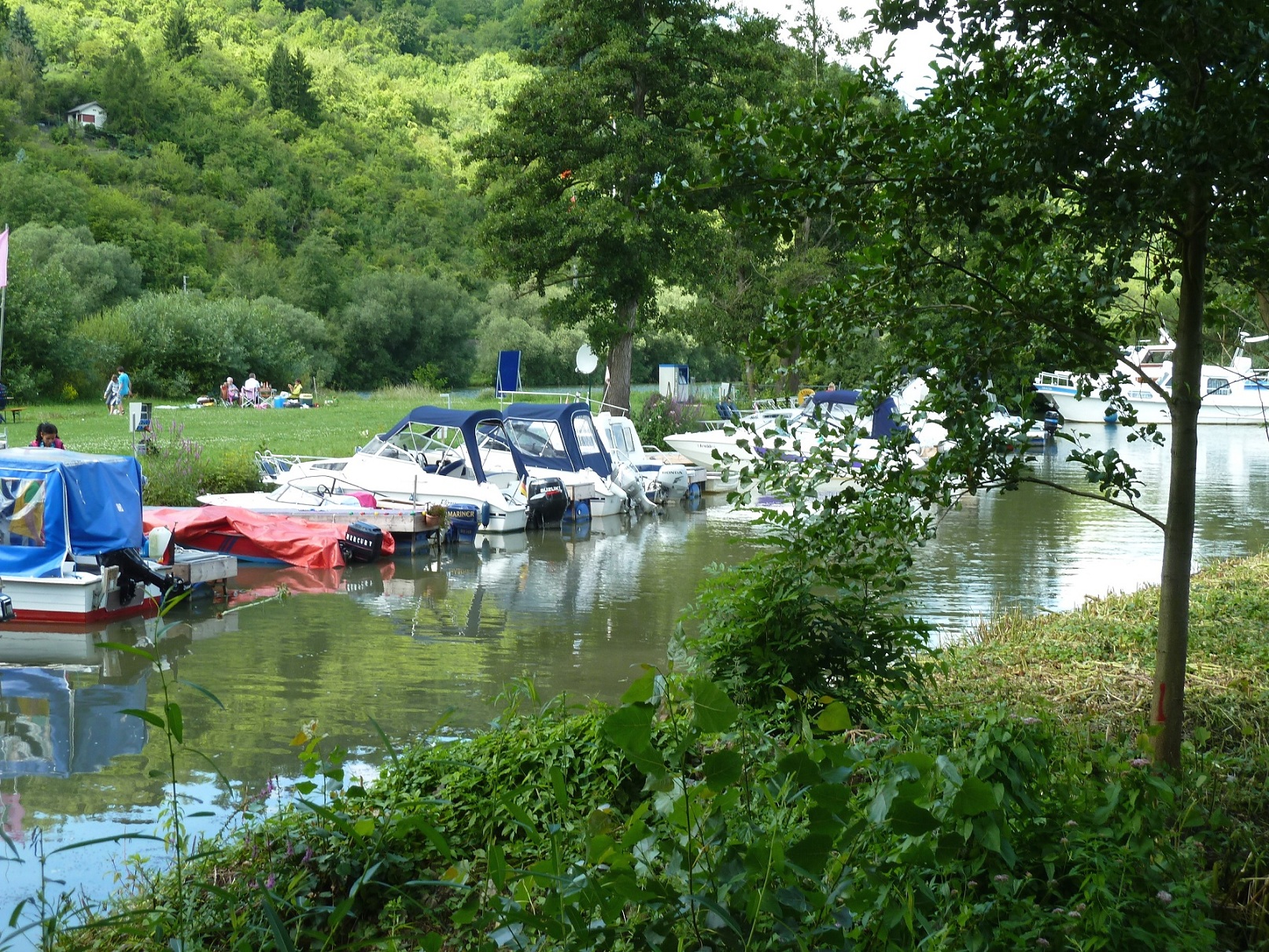 Die Halbinsel kann als Liegewiese genutzt werden und ein Grillplatz bietet sich an zu einem romantischen Grillabend am Main. Außerdem haben Sie die Möglichkeit bei uns im Hafen Boote zu slippen und in diesem zu baden.