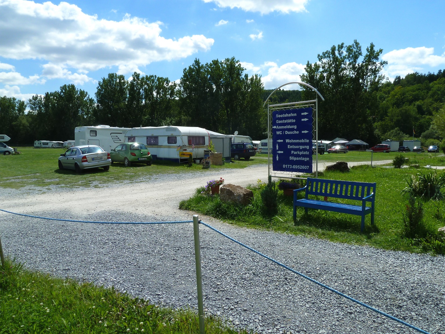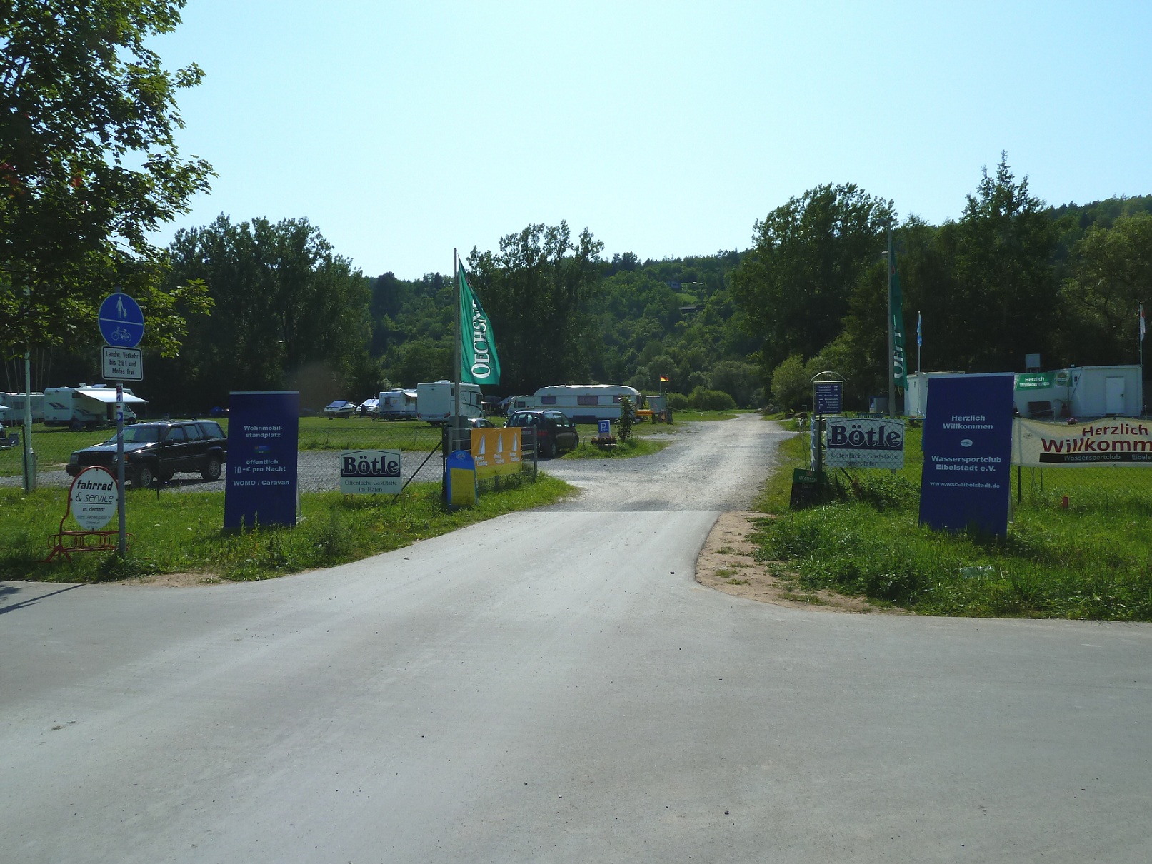 | Kurzbeschreibung | Eingezäunter Stellplatz mit VE und Sanitäranlagen. Bootsliegemöglichkeit und Slipanlage im Hafen. Grosszügige Anlage direkt am Main. |