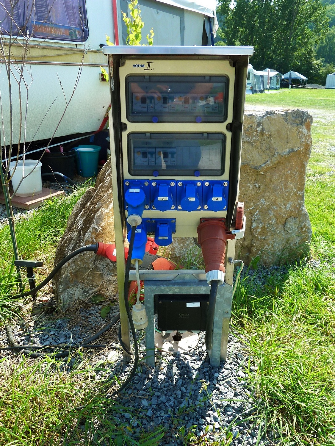 | Strom | Bei den Stellplätzen. 6 Ampere je Anschluss |